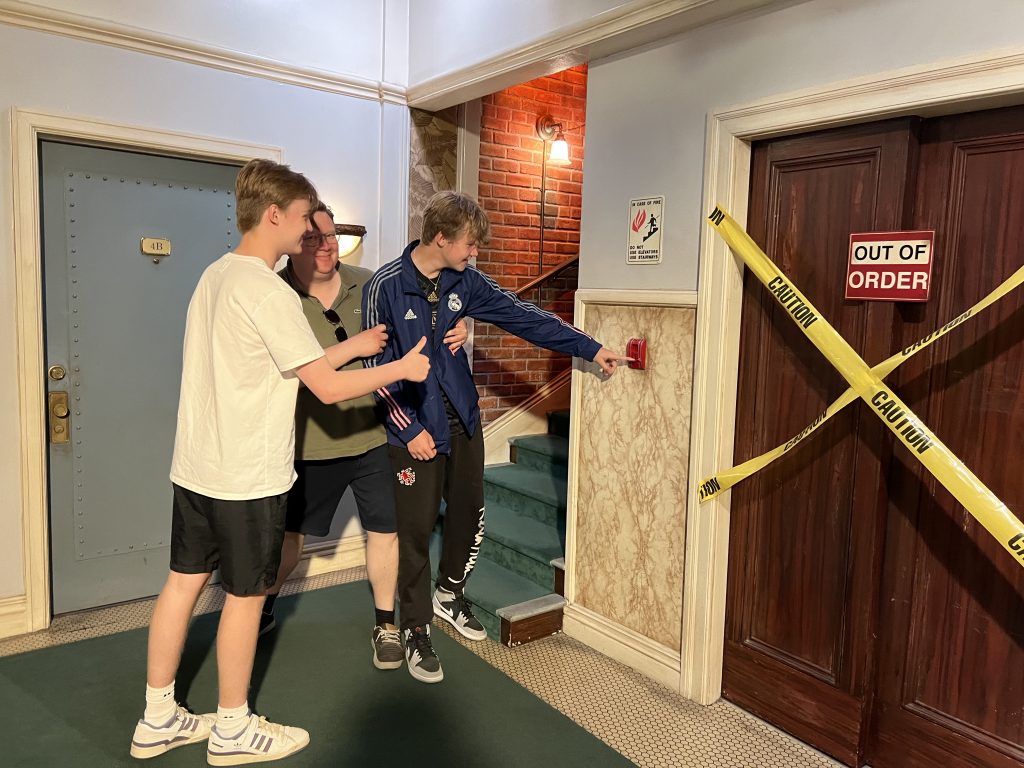 Vi fik også taget vores billede med springvandet fra Venner, sofaen på Central Perk (fra Venner), Sheldons stue (Big Bang Theory) og flere andre scener. De fleste syntes jeg var super sjove at se, men drenge kendte dem ikke rigtigt så de var ikke helt så begejstret. Men de fik da et billede fra Harry Potters værelse under trappen. Vi var alle enige om det havde været en rigtig god tur 😀