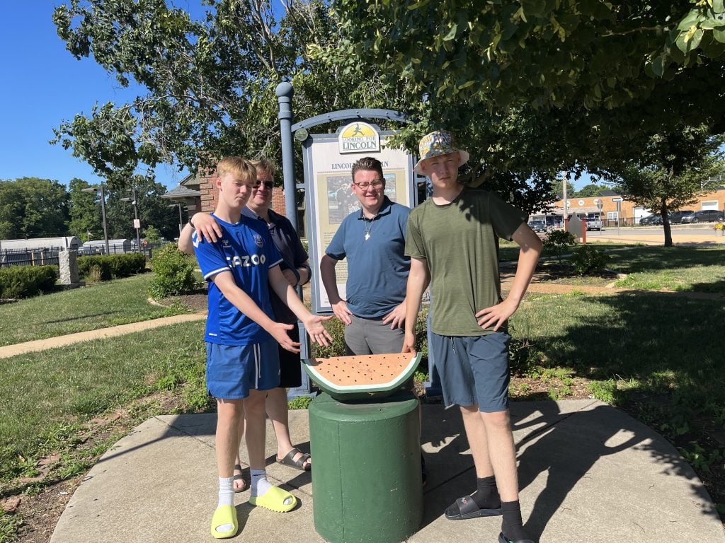 Herunder er en del af de ting vi så. Vandmelonen er fra byen Lincoln som blev døbt af Abraham Lincoln med saften fra en vandmelon!! Vi fik også besøgt en kirkegård, vi troede det var Abraham Lincolns grav vi skulle se, men det var en militær kirkegård opkaldt efter ham. Da der snart skulle være en begravelse, så var vi der kun ganske kort.