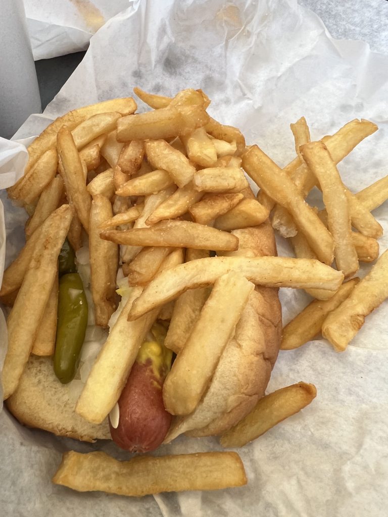 Vi havde en mere Chicago ting vi skulle nå, at spise en Chicago style hot dog. Den fik vi hos Henry’s drive in som også er et “Route 66 icon”. Da vi først havde fået gravet hot dog’en ud af pomfrit bunken, så var der en hel habil hot dog. Vi skulle også lige besøge en soccer trøje butik.
