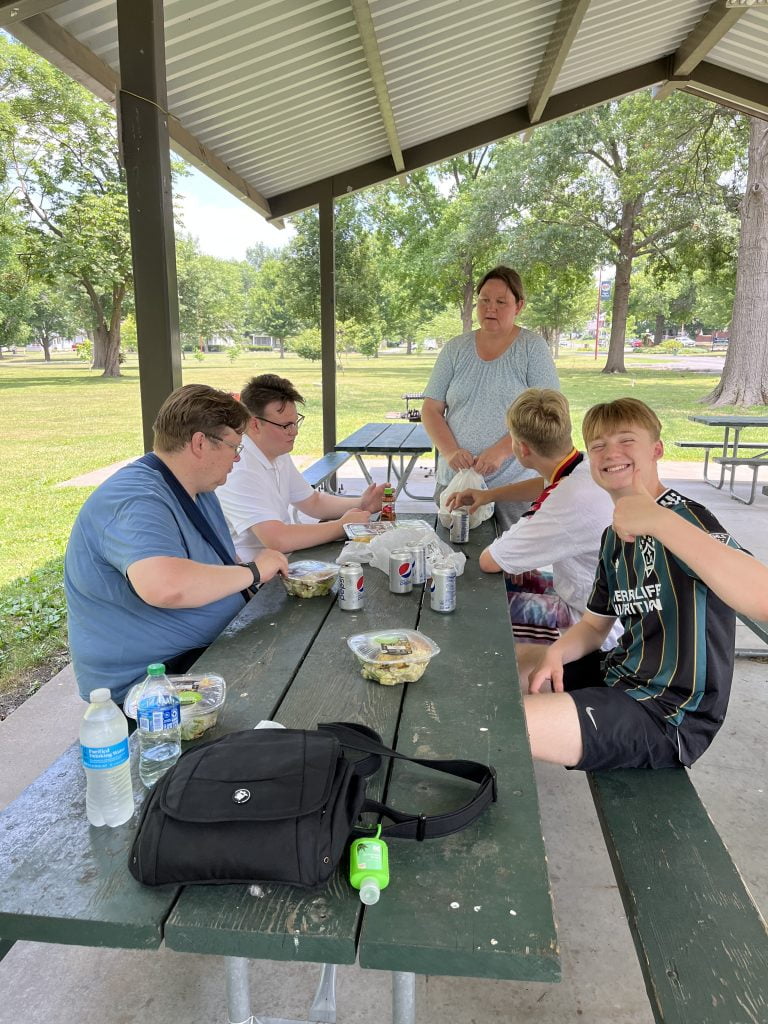 Herefter kørte vi til en Wal-Mart og købt en salat til frokost og fandt en bænk i en park hvor vi kunne spise frokost. Her fik vi besøg af nogle meget nærgående egern. Lige nærgående nok, men dog uden at komme helt hen til os.