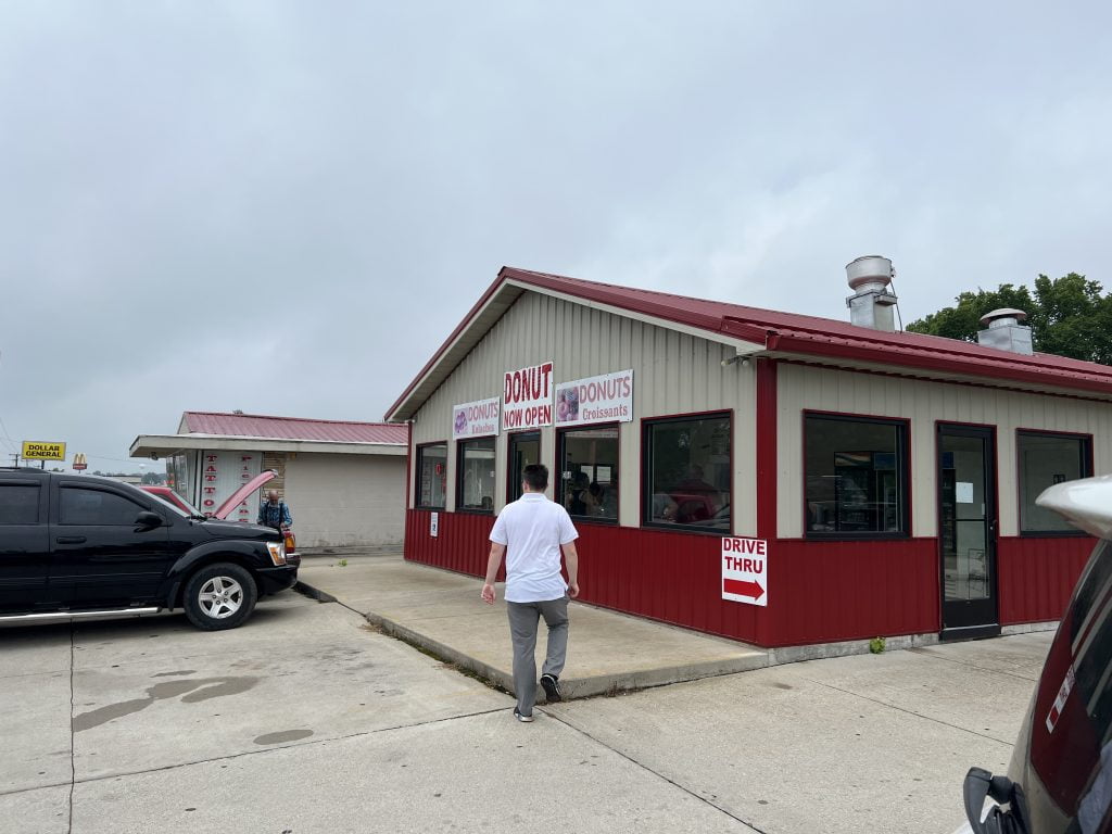 I dag skulle vi køre fra Lake of Ozarks til Kansas City. En tur man kan køre på lige under tre timer. Men vi havde valgt at fravælge motorvej og tage de oplevelser der var på vejen. Vi havde ikke kørt langt før vi så en lokal donut butik. Da vi endnu ikke havde fået donuts på denne tur, så vendte vi bilen og gik ind for at købe en donut til hver. Vi blev enige om de var så gode, at vi skulle anbefale stedet på tripadvisor. Da jeg søgte den frem fandt jeg ud af den var på bruttolisten over steder der var værd at stoppe i området (men rent tilfælde vi fandt den).