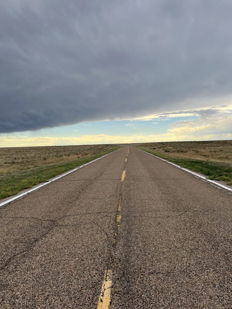 På vej mod Colorado Springs fik vi en vejr alarm for det område vi var på vej ind. Der var både varsel om storm, lyn, torden og mulig styrtflod. Det var egentligt ret bekymrende læsning, især da der blev rådet til at søge indendøres i forbindelse med stormen. Men vi var super heldige, vejret drejede udenom os og vi kørte stort set i tørvejr hele vejen til hotellet. Det var ret vildt, for vi kunne se det dårlige vejr på begge sider af os, men vi kørte bare mod lyset.