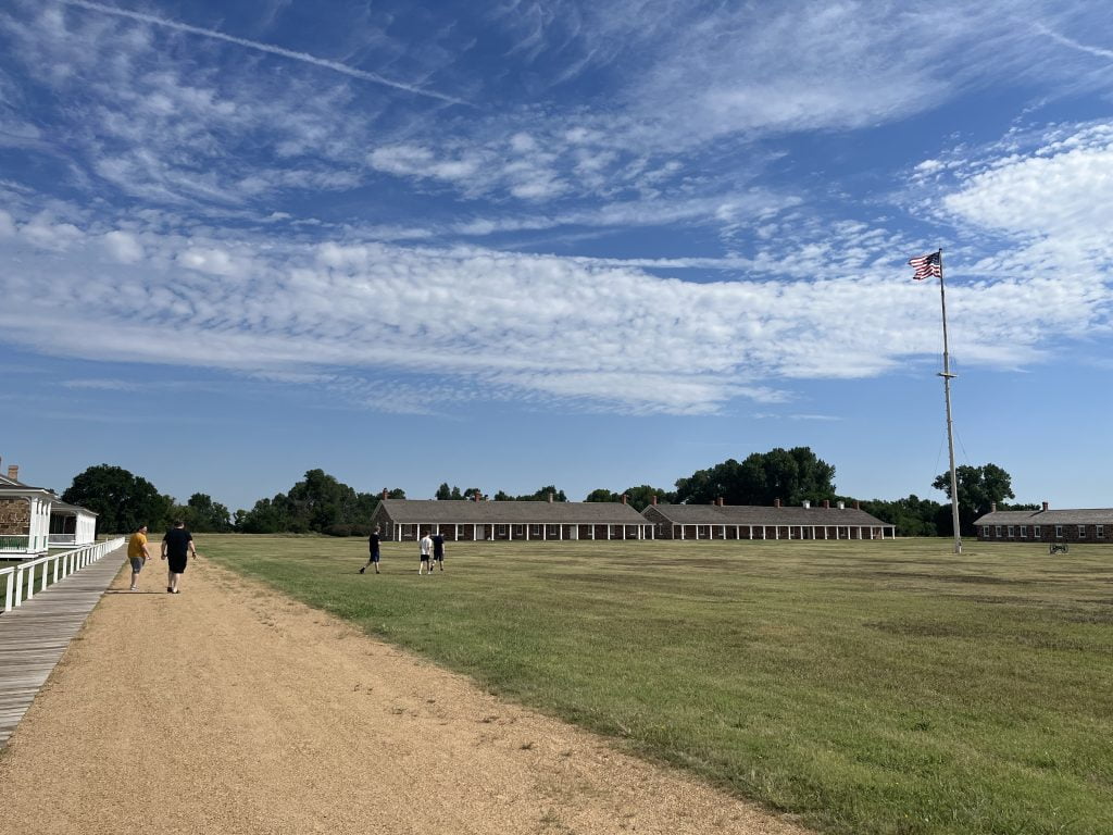 Første stop var på Fort Larned National Historic Site. Det er et fort som lå ved “the Santa Fe trail” og som var en vigtig vej for frembringelse af post. Så fortet blev bygget for at militæret kunne passe på postvogne. Men man gjorde det selvfølgelig også for at få militær tilstedeværelse i området. Tilstedeværelsen betød en ret hård behandling af de lokale indianere som over flere gange blev fortrængt til nye områder og til sidst måtte underskrive en erklæring om de ville bo i et reserveret og dykke jorden der (før var det mere et jæger samfund). Fortet var funktionelt i 18 år, derefter blev Santa Fe Trail udskiftet med jernbanen.
