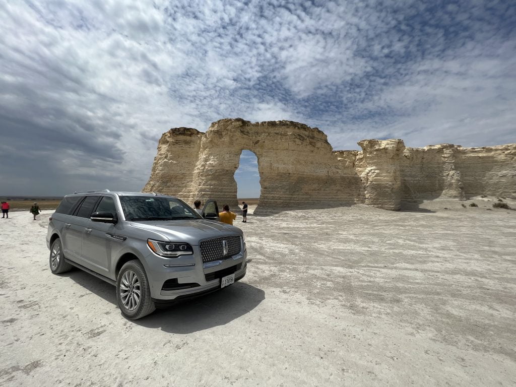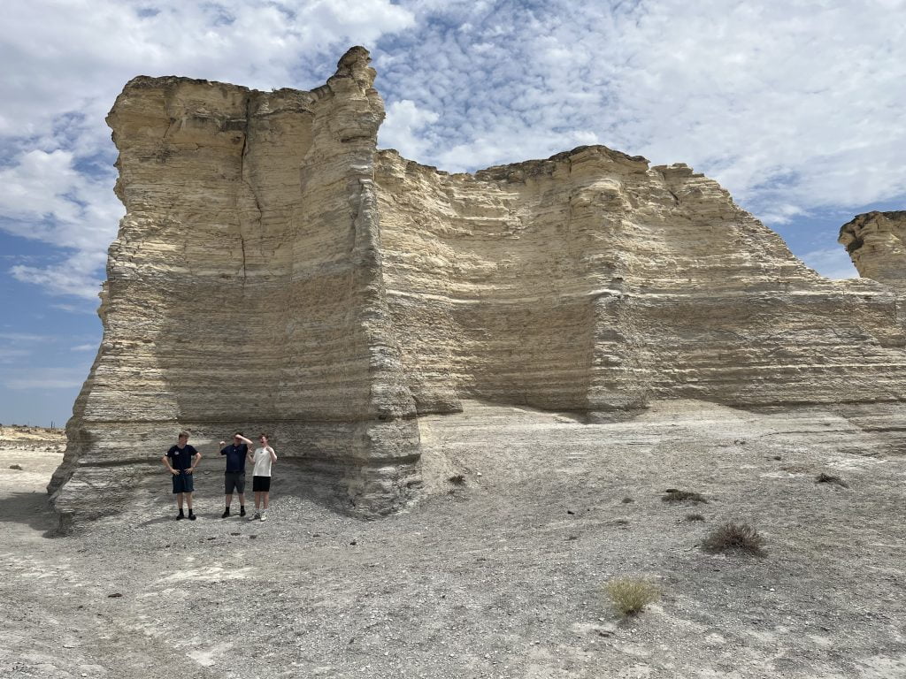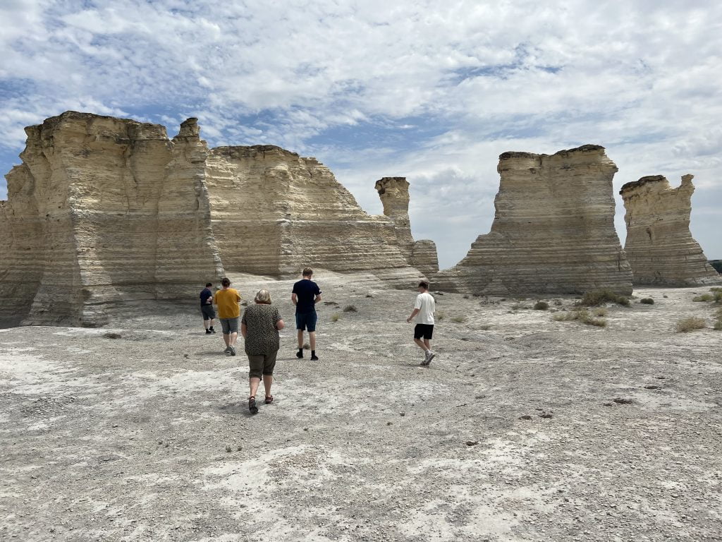 Efter tyve kilometer på en grusvej nåede vi frem til dagens anden attraktion. Det var Monument Rocks. Nogle flotte klipper der står ret ødet i Kansas. Det der gør dem “ekstra sjove” er at alt før og efter dem er ekstremt fladt i Kansas.