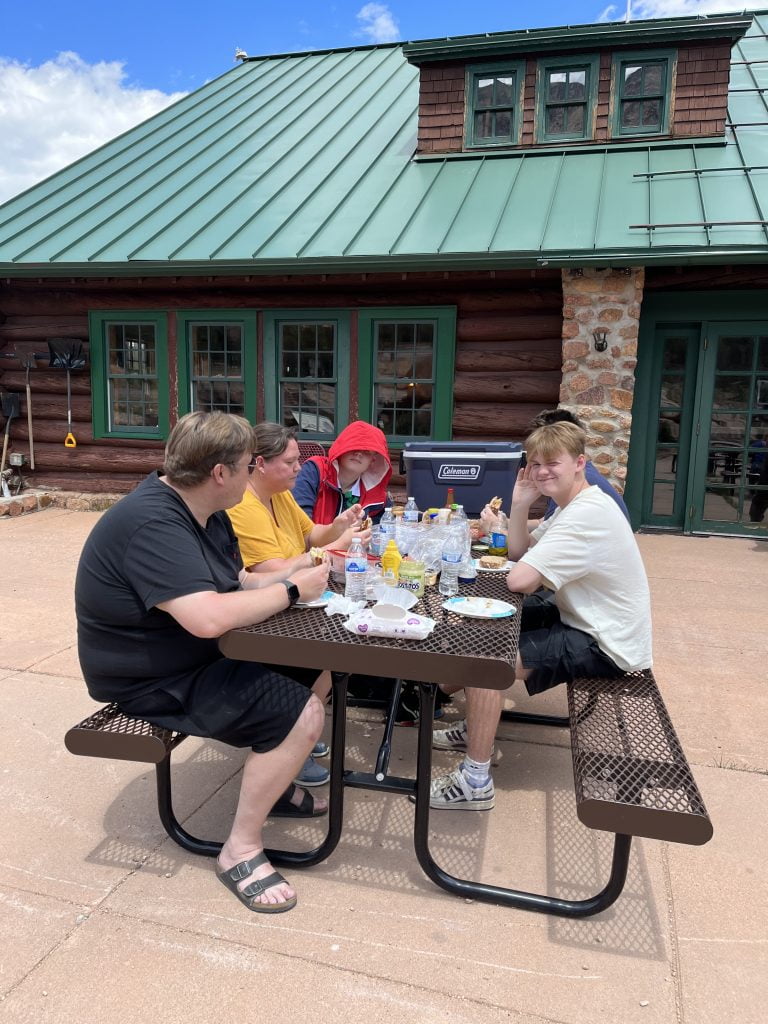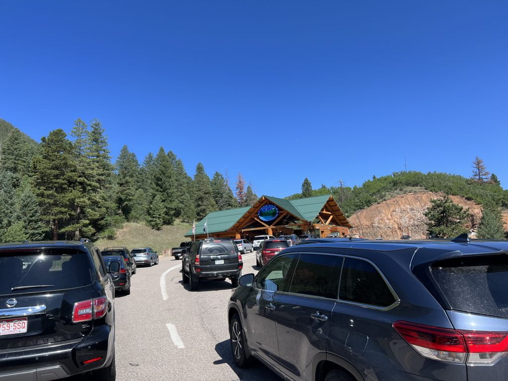 Efter et solidt morgenmåltid kørte vi forbi en tankstation og købte noget is til vores fryseboks, den var fyldt med vand og mad til vores madpakker. Derefter kørte vi mod indgangen til Pikes Peak.