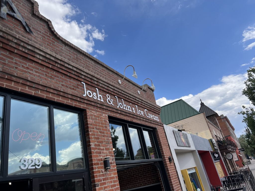 Herefter kørte vi ned til downtown Colorado Spings. Temperaturen var nu sneget sig op på 32 grader. Først prøvede vi at komme ind og se en kirke. Men den var desværre lukket på grund af indbrud. Derefter gik vi en tur down town og så på butikker og sluttede turen med en rigtig god is. Vi bestiller altid en lille is og undre os hver gang over hvor stor den er.