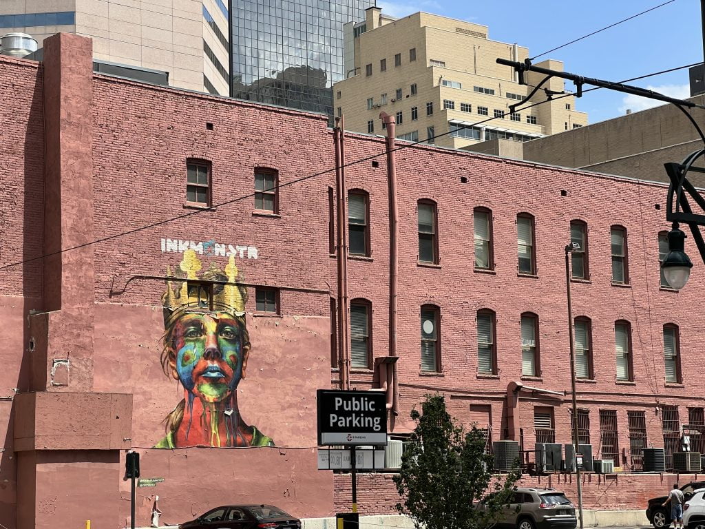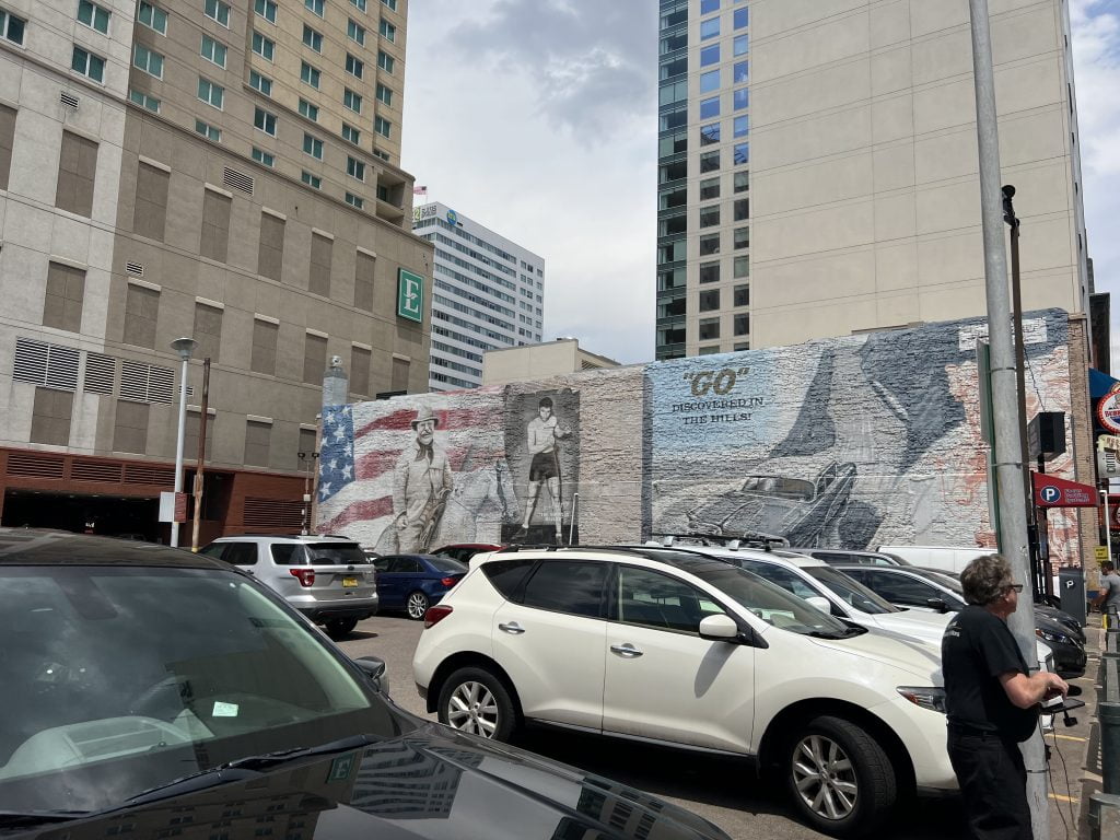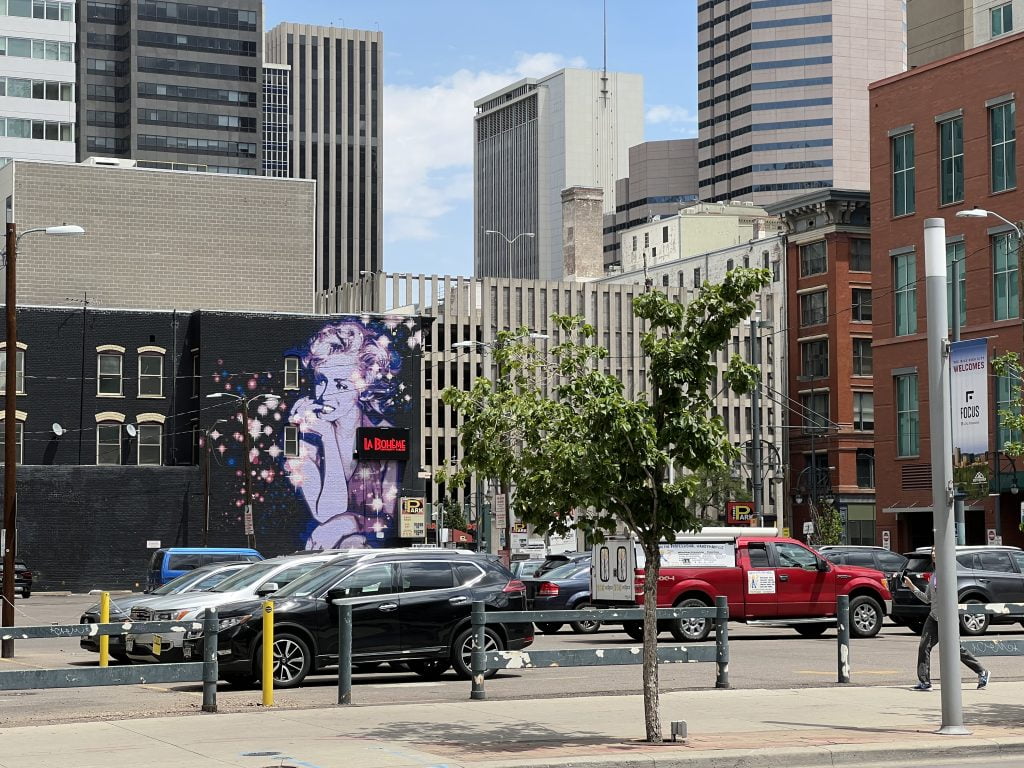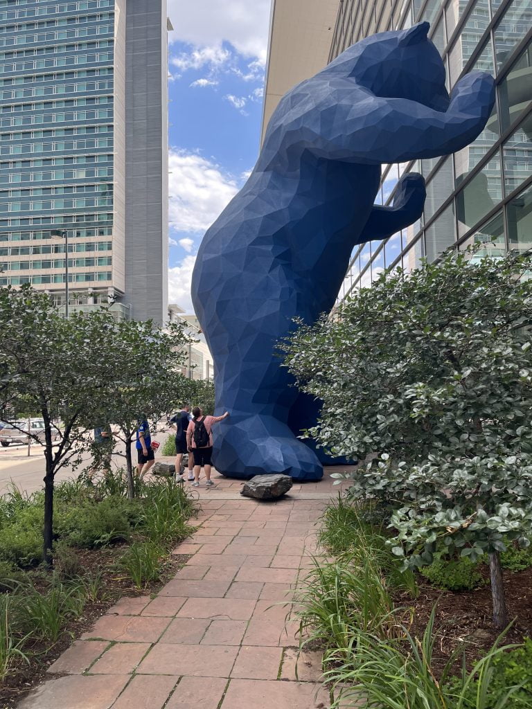 Efter en kort siesta gik vi en ny tur i indre by. Vi kom forbi den store blå bjørn som kendetegner Denver. Vi fik også set lidt forskellige statuer og “væg/gavl kunst”. Da vi ville en tur på byen visitor center, så var det lukket…