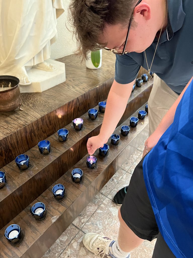 Vi gik videre ned til den kirke som Winnie og Storm havde været i klokken 7.00 om morgenen. Det var en flot kirke og vi fik tændt et lyd for farfar.